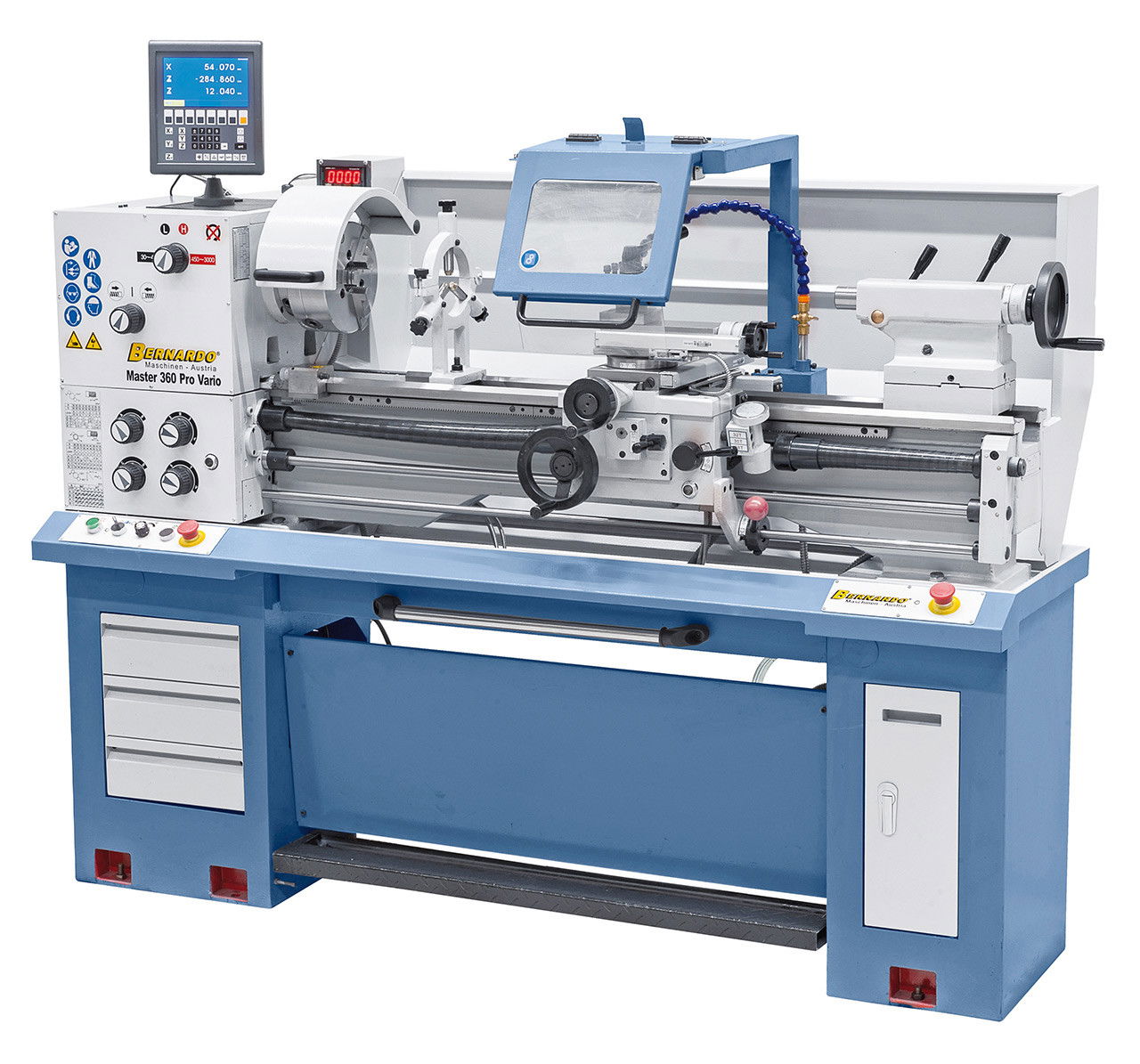 Bernardo Master 360 Pro Vario univerzális esztergagép + 3-tengelyes-helyzetmutató ES-12 V LCD kijelzővel, 400 V